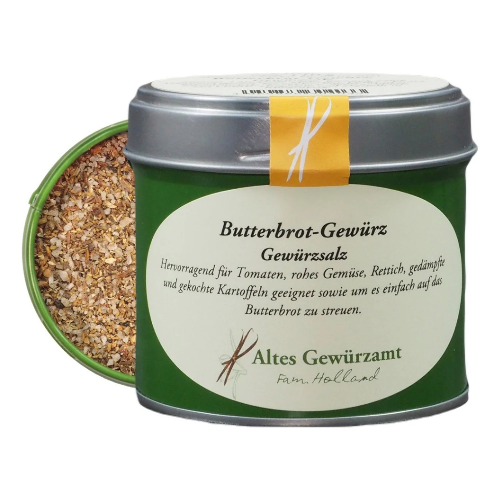 Herzhaft, aromatisch, unkompliziert: Das Butterbrot Gewürz vom Alten Gewürzamt macht aus einer einfachen Scheibe Brot einen kleinen Genussmoment. Mit seiner fein abgestimmten Mischung verleiht es Butterbroten, Tomaten und frischem Gemüse im Handumdrehen eine würzige Note.